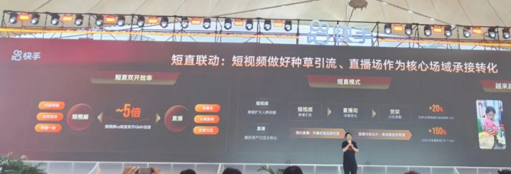 从数据来看,短直一体为创作者带来了商业转化效率的提升。快手高级副总裁、快手电商事业部负责人兼商业化事业部负责人王剑伟表示,“短直双开”带来的GMV是单一短视频的5倍。