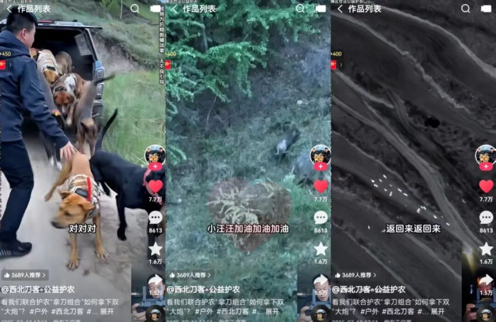 无人机率先升空,热成像画面里,几头拱坏庄稼的“佩奇”正躲在树丛里,“放狗”口令一声令下,猎犬们纷纷从皮卡车跳下,开始了一场紧张的护农狩猎之战。这段视频来自快手三农领域创作者“西北刀客—公益护农”。