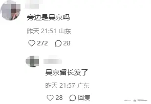 更有意思的是,远远看过去,姚沁蕾的侧脸和神态居然和吴京有几分神似。