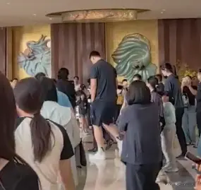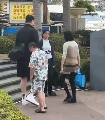 但画风一转,早上有网友在三亚某高端酒店门口偶遇时,拍到的画面就让人有点心疼了。