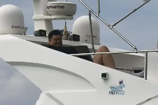 这位网友拍的视频里,姚明正独自坐在游艇甲板上晒太阳,翘着二郎腿,手里拿着一杯饮料,一脸惬意,看样子是在享受难得的放松时光。
